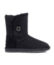 The iconic design makes these Luxe Classic Short Button UGG Boots a timeless addition to your wardrobe. Premium Australian double face sheepskin combines comfort and durability, and breathes to keep your feet warm in winter and cool in summer. A wood-button closure makes those boots even more versatile as they can be folded down to get a fluffy collar. The plush wool insole delivers top-of-the-line comfort, and the soft TPR flexible outsole makes these boots ideal for indoor and outdoor wear. They are made from top-grade leather for durability you can count on, and eco-friendly dyes are used to reduce their environmental impact. Comes with a special water-resistant coating that resist dirt and slows the penetration of water to keep the surface dry.