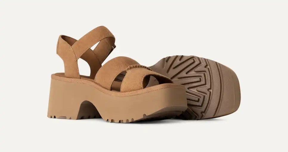 Planifiez votre voyage. Idéale en été, la New Heights à lanière à la cheville comporte une semelle ultralégère à plateforme fabriquée en canne à sucre renouvelable misant sur le confort et la sophistication. Ces sandales présentent également la Twin Seam et un bout carré. Que ce soit pour assister à un mariage ou à une soirée, la New Heights à lanière à la cheville sera au rendez-vous.