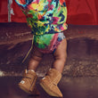Feel good factor comes from UGG Kid's Baby Neumel Boot Infants featuring suede upper, fixed elastic laces, Hook-and-loop closure, 10mm UGGpure upcycled wool lining, or 10mm UGGplush 80% upcycled wool, 20% lyocell lining, 10mm UGGpure upcycled wool insole or 10mm UGGplush 80% upcycled wool, 20% lyocell insole, molded rubber outsole, 2.25" shaft height, woven heel label with UGG® logo.
