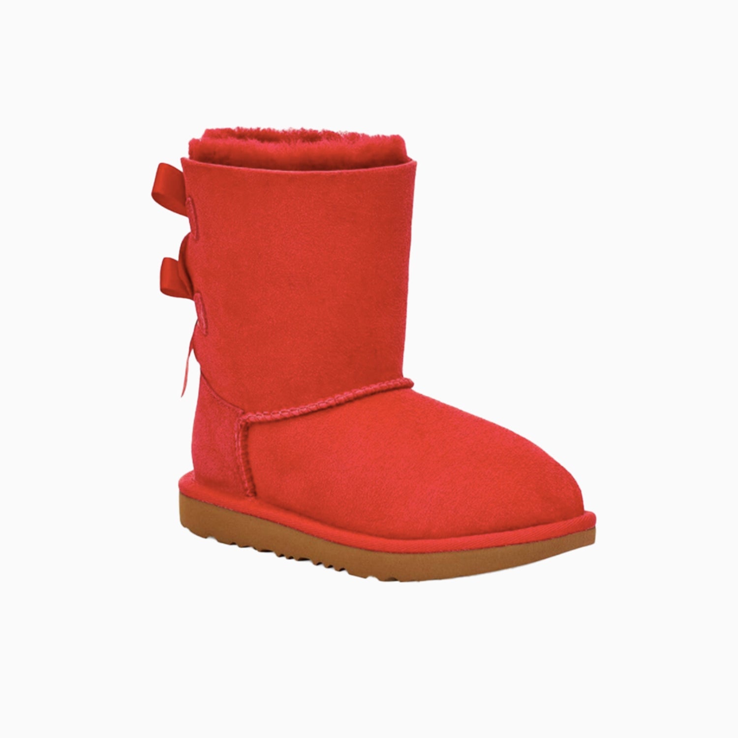 Ugg Toddler’s Bailey Bow II Boot adds sweet silky bows to your little one’s favorite boot, but kept the super-soft sheepskin feel they love. Built to move the way kids do, each boot features a rocker-bottom shape for a barefoot feel and our super-lightweight outsole for traction and durability.