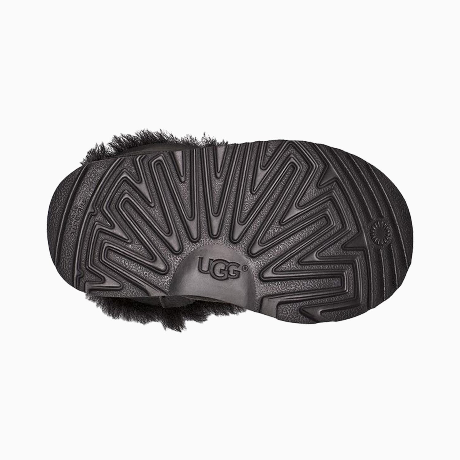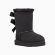Bow yourself in the footcare style of UGG Kid's Bailey Bow II Toddler Boot featuring protected: post-applied treatment, topically applied water repellency treatment, 17mm Twinface sheepskin upper, fixed satin bows along the back shaft, 17mm sheepskin lining, 17mm UGG pure upcycled wool insole or 17mm UGG plush 80% upcycled wool, 20% lyocell insole, foam footbed, tread lite by UGG outsole for comfort, polyester binding or textile binding made from 100% recycled polyester fibers, 4" shaft height, woven heel label with UGG logo.