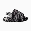 Glow like the fur of the Zebra by UGG Kid's Fluff Yeah Slide Zebra dyed sheep fur, rubber sole, 10mm sheepskin upper, elastic strap with UGG graphic, molded rubber outsole, 10mm sheepskin lining, 10mm sheepskin insole