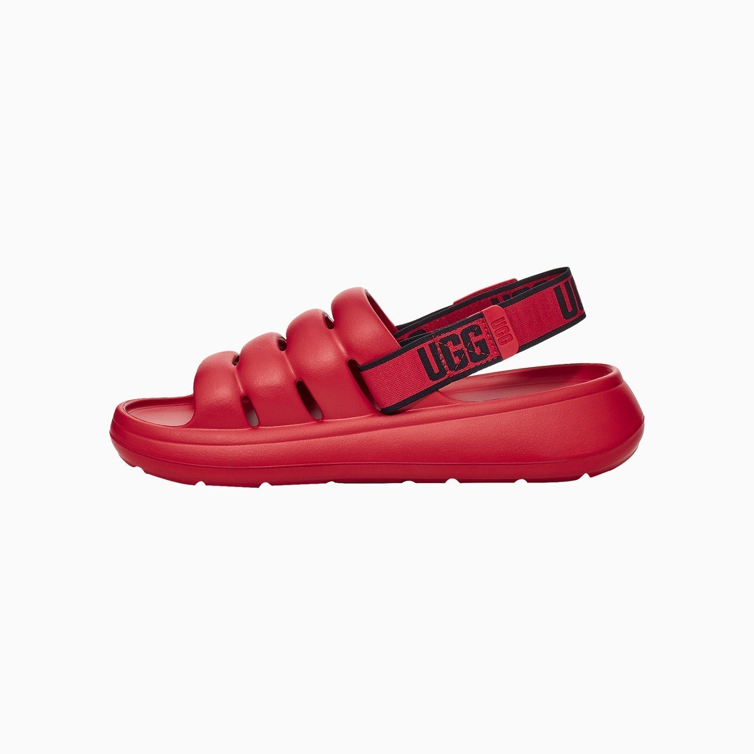 - UGG® webbing, Hook-and-loop closure, Removable heel strap, Adjustable heel strap