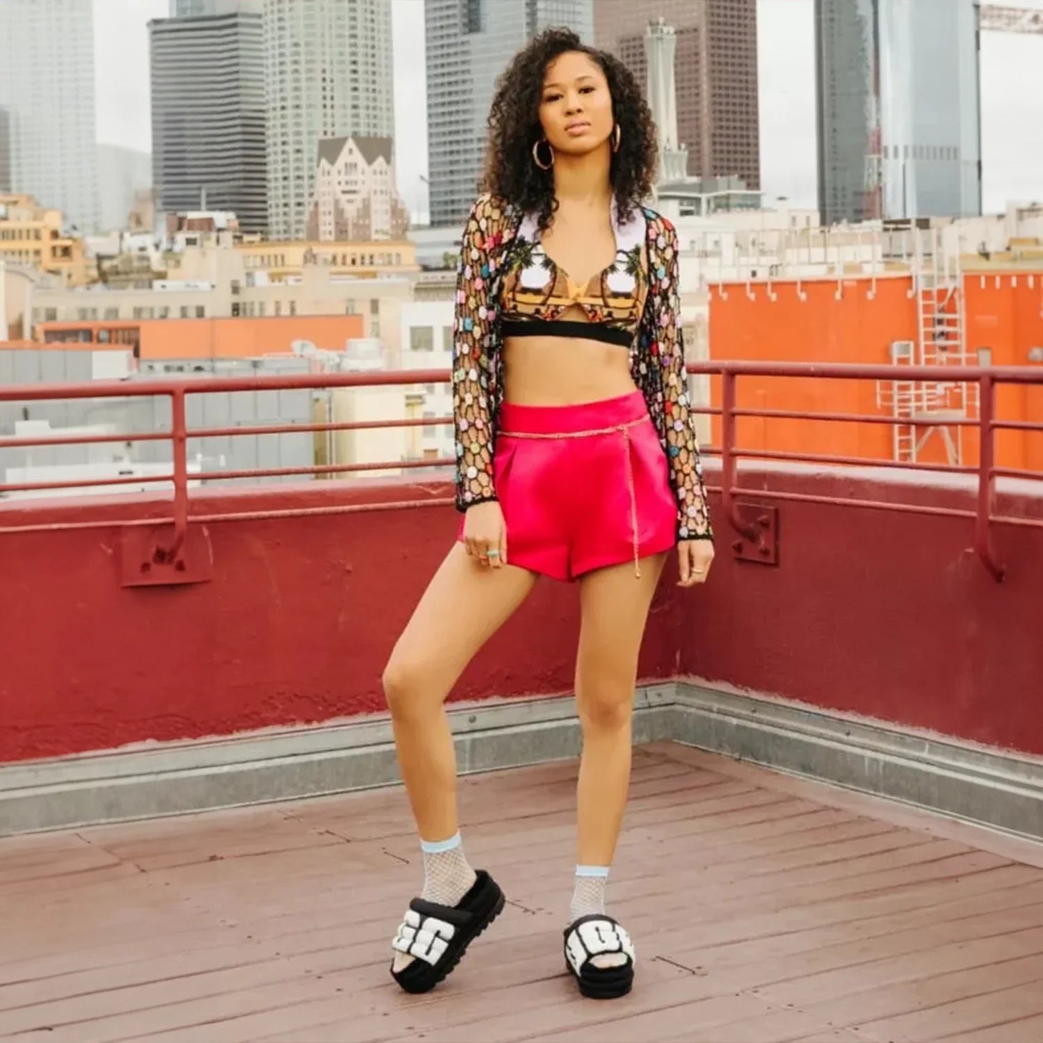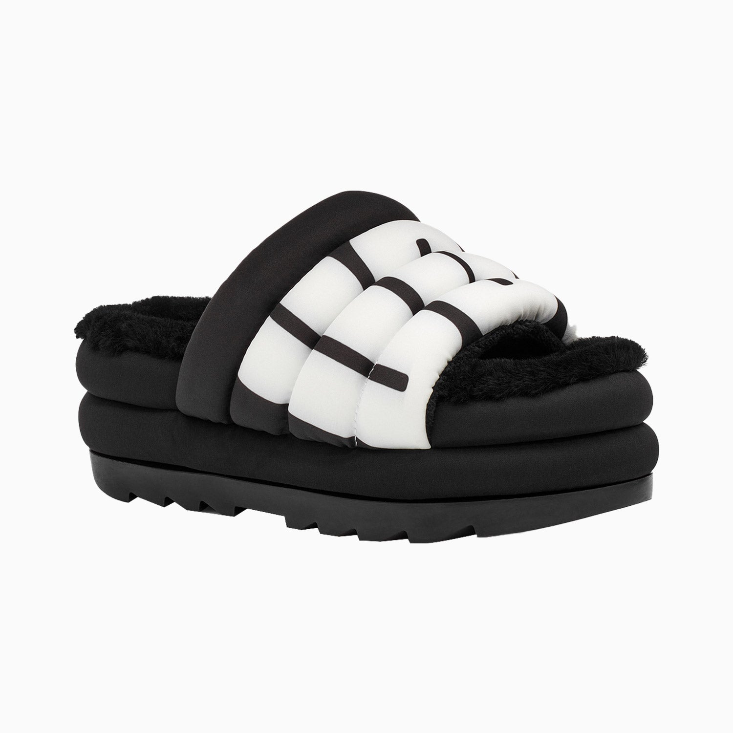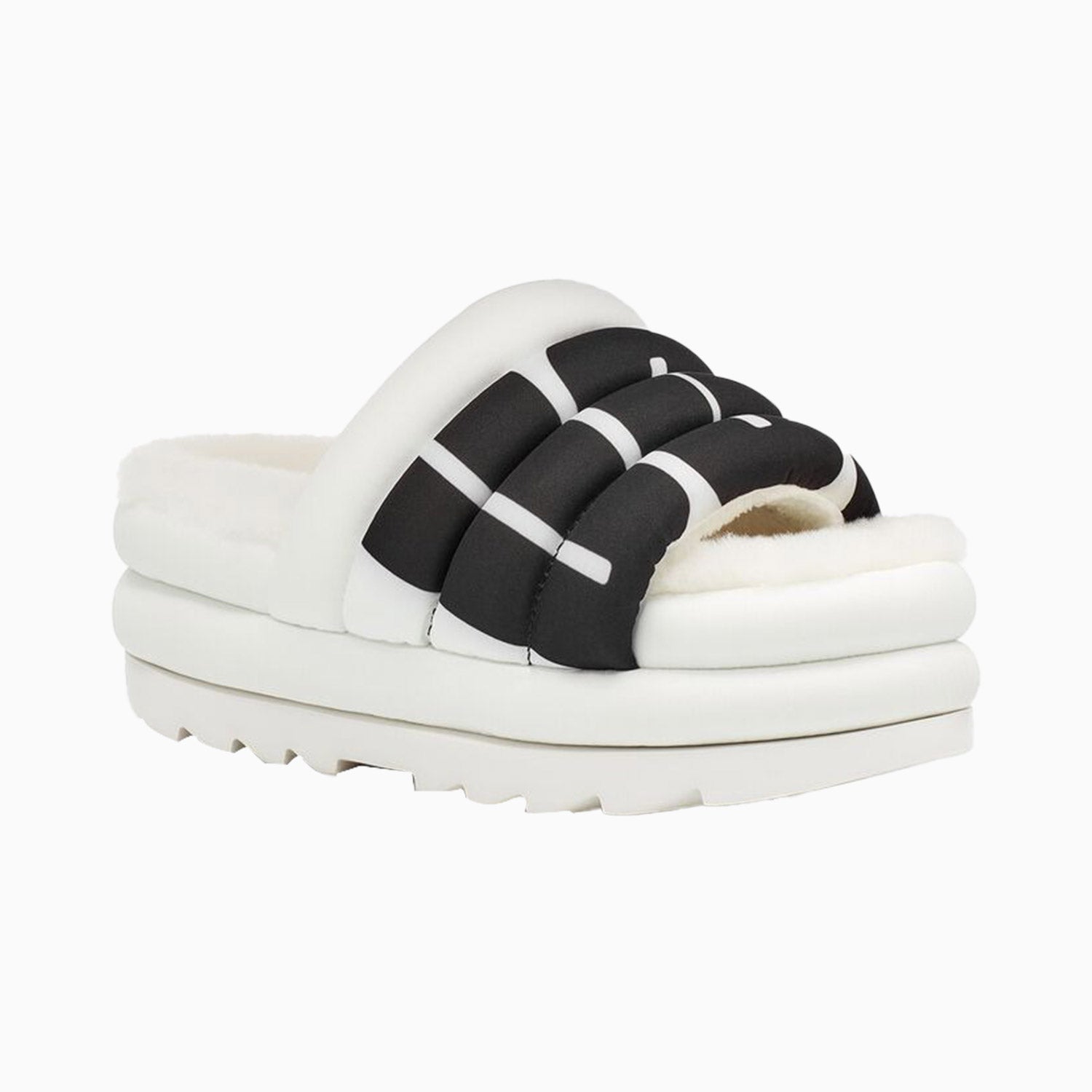 Extending the feeling of UGG to a spring-ready platform with lightweight puff uppers, the Maxi Slide is a statement sandal featuring our signature sheepskin insole and bold graphic logo print. Set on a maximalist 2.5" sole, it offers a leg-lengthening look and ultra-cushioned step. Pair with shorts, crop tops, and more the styling options are endless.