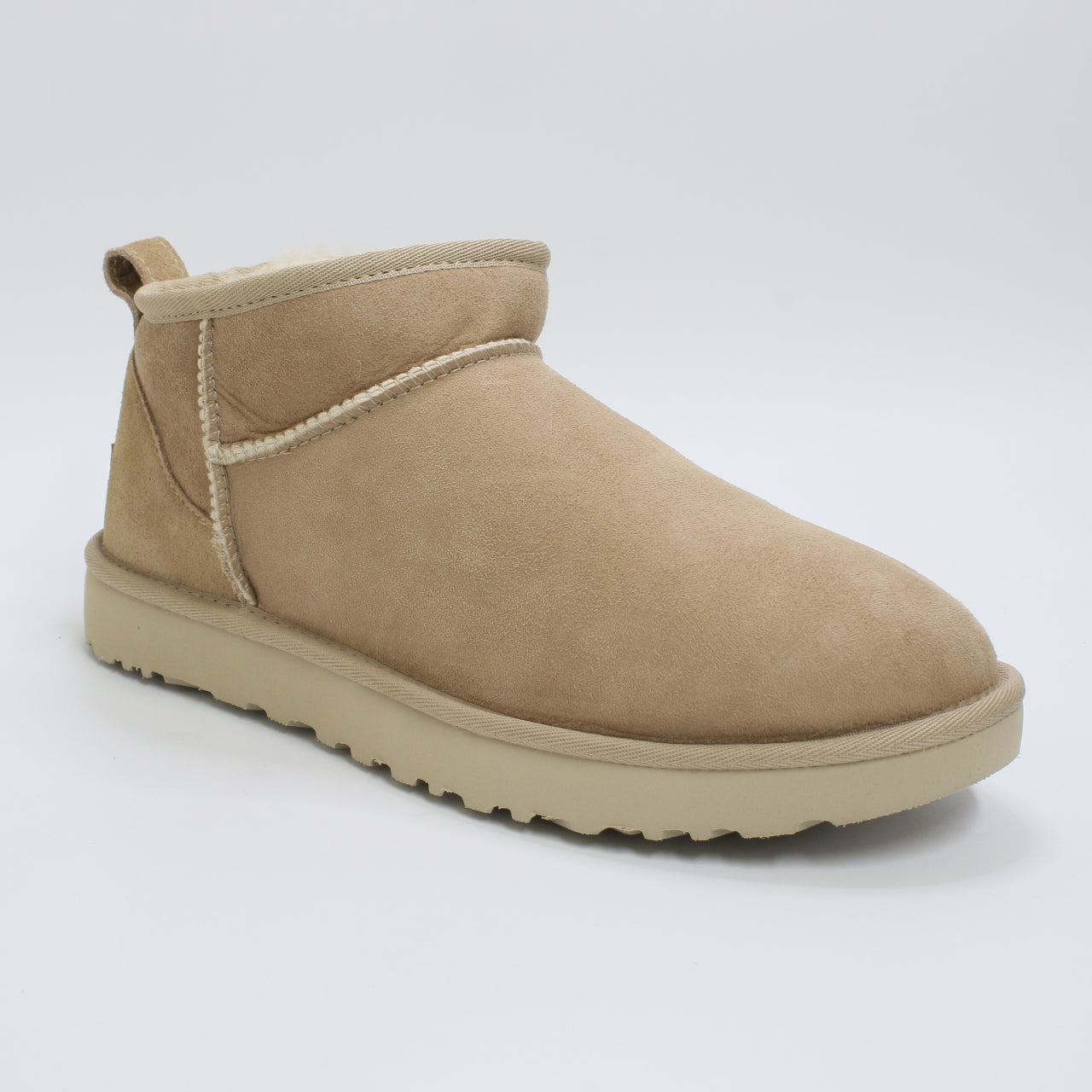 The Mini silhouette loved by millions, has been redesigned with an even shorter ankle profile! Presenting the new Ultra Mini. Still constructed with premium materials, the Classic Ultra Mini has been upgraded with a pre-treated upper to repel water and stains, as well as the Treadlite Ugg sole, providing even more comfort and traction than ever before! Perfect for your outdoor adventures or as cosy indoor booties.