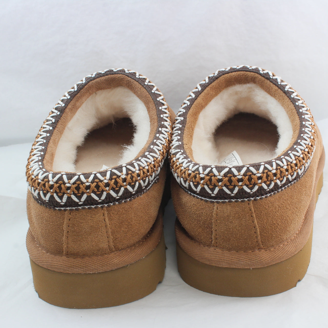 Sturdy, comfortable quality slip on silhouette featuring the same durable outsole as the iconic UGG Classic Boot. Crafted with velvety suede, plush natural wool and an embroidered braided detailing. Classic chestnut colourway